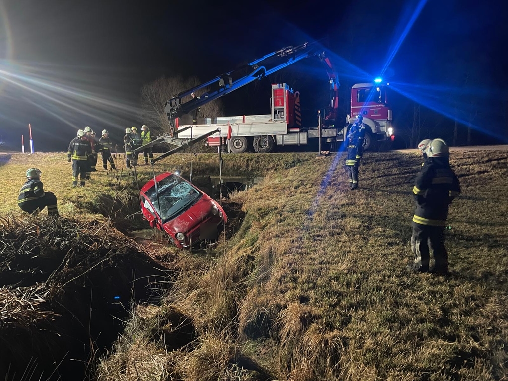 Am Sonntag, den 07.12.2025 gegen 18:30 Uhr, alarmierte uns Florian NÖ zu einer PKW-Bergung zwischen Nonndorf und Siebenberg. Am Einsatzort angekommen fanden wir einen PKW seitlich im Bach liegend vor. Der Fahrzeuginsassen waren schon vom Samariterbund abtransportiert. Wir leuchteten die Unfallstelle gemeinsam mit der FF Nonndorf aus und hoben mit