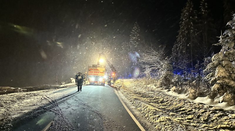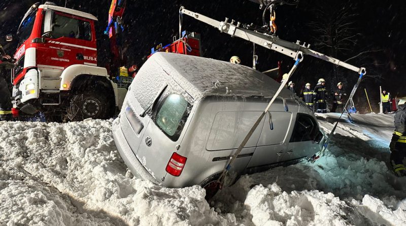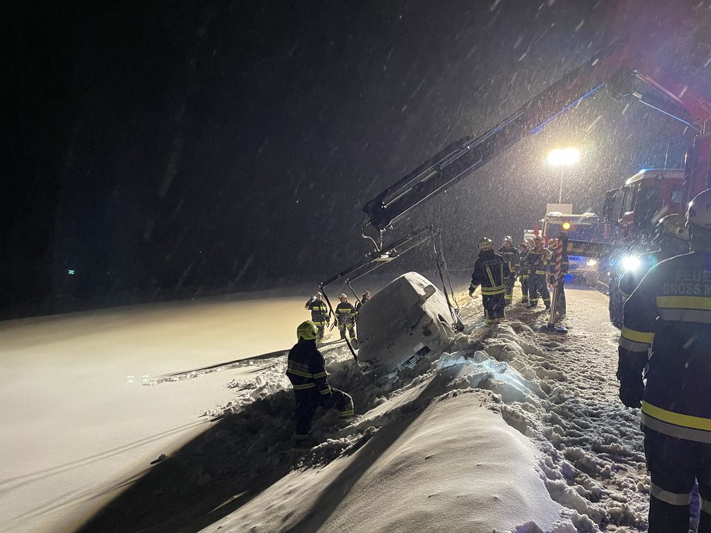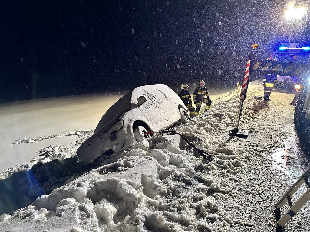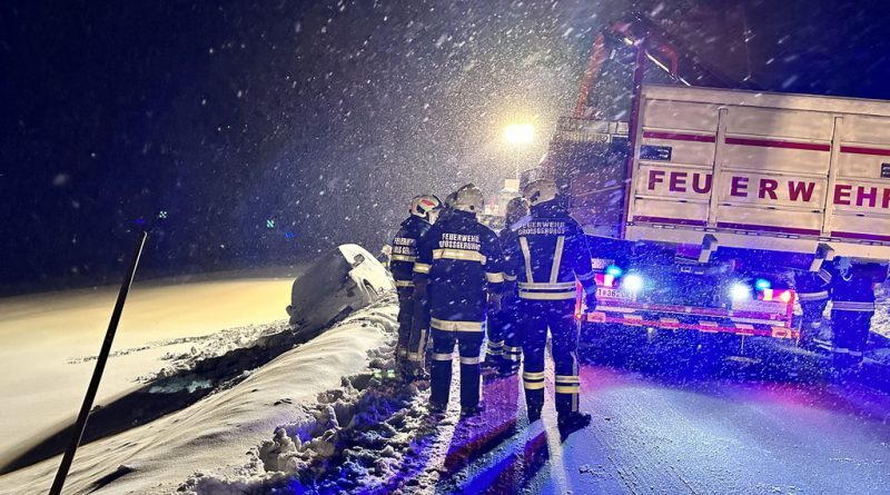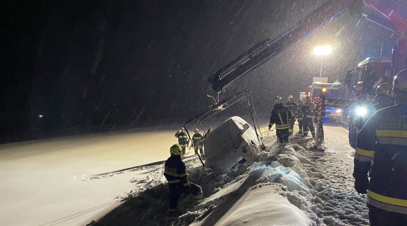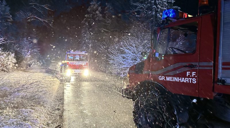Am Samstag, den 03.12.2023, alarmierte uns Florian NÖ zu einer Fahrzeugbergung auf der B38 zwischen Groß Meinharts und Dietmanns. Auf der Schneefahrbahn war ein PKW vermutlich aufgrund schlechter Bereifung von der Fahrbahn abgekommen und auf der Böschung zu stehen gekommen. Da sich das Fahrzeug am Kipppunkt befand alarmierte die FF Groß Meinharts unser WLFA mit Kran.