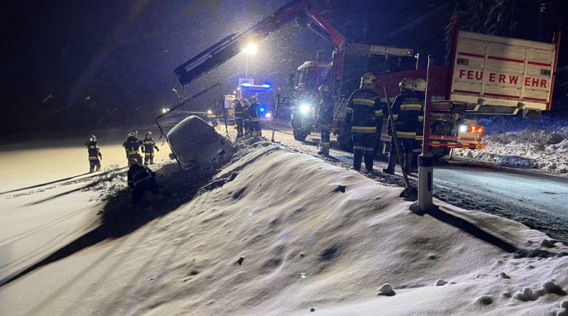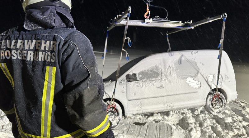 Wir rückten mit dem WLFA, dem HLF2 und 9 Florianis aus, die zum Teil ihre Teilnahme an unserer Weihnachtsfeier unterbrachen. Mittels Kran hoben wird das Fahrzeug zurück auf die Straße. Anschließend kehrten einige Mitglieder zur Weihnachtsfeier zurück.