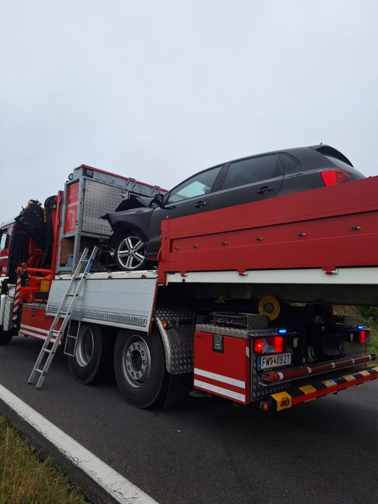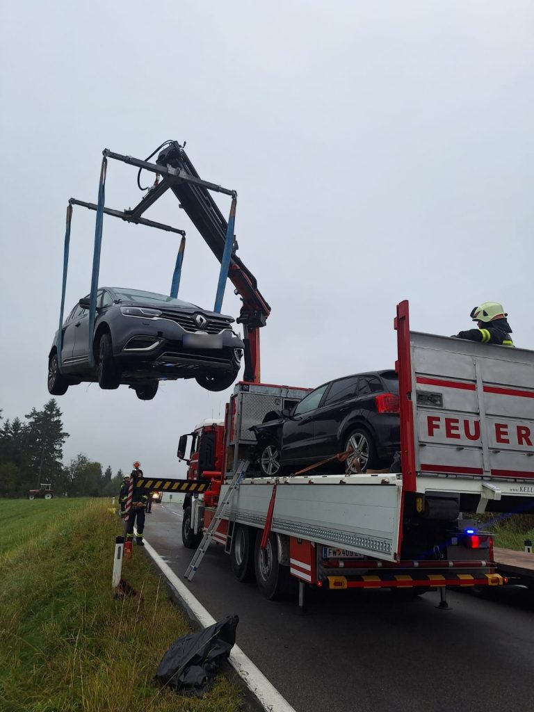 Zur Bergung sperrte die Polizei kurzfristig die B38. Mittels Kran des WLFA hoben wir einen PKW auf die Ladefläche und das zweite Unfallfahrzeug auf den Abschleppanhänger. Anschließend wurden beide Fahrzeuge gesichert abgestellt. Gegen 11:00 konnte wir den Einsatz beenden.