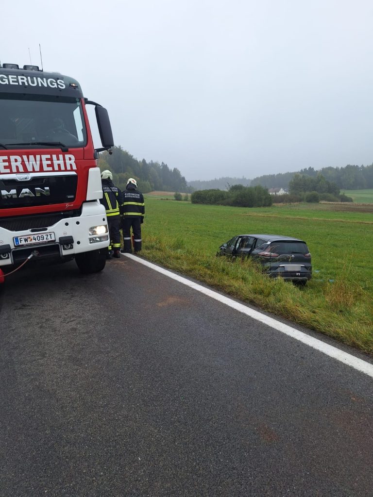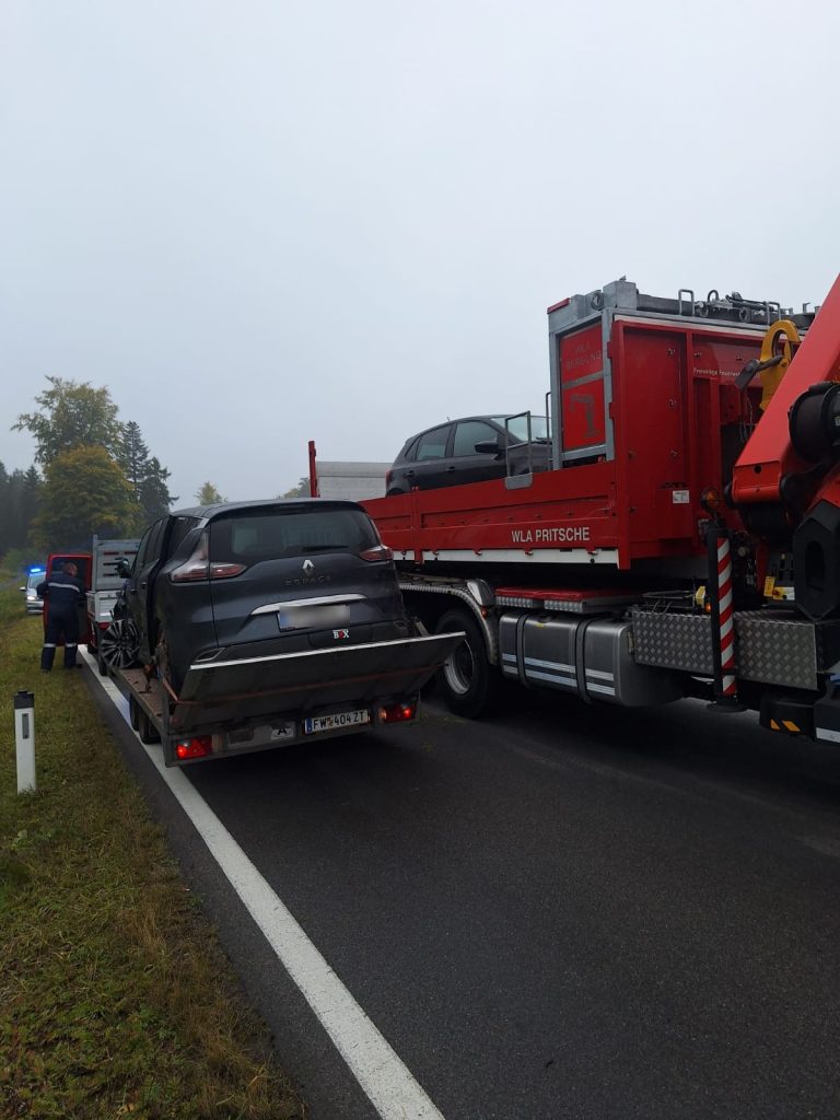 Am Mittwoch, den 08.10.2025 gegen 09:30, alarmierte uns Florian NÖ zu einem Verkehrsunfall auf der B38 Nähe Groß Meinharts um die zuständige FF Groß Meinharts bei der Fahrzeugbergung zu unterstützen.