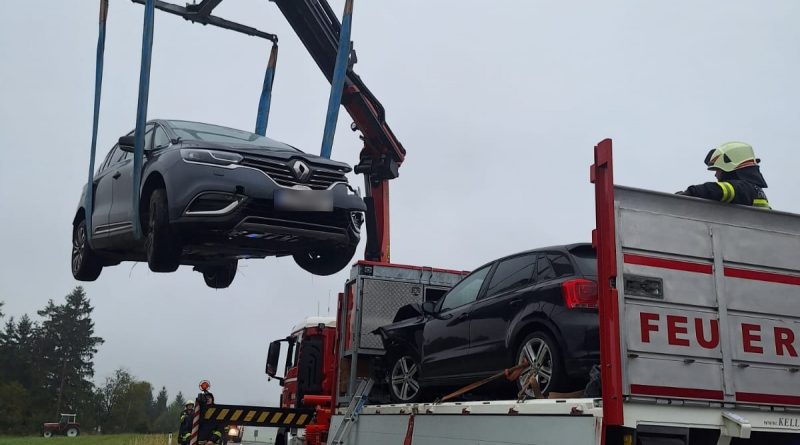 Wir rückten mit 6 Florianis, dem Wechsellader mit Kran und der Pritsche mit Abschleppanhänger zum Einsatzort aus. Am Einsatzort war es zu einer Kollision von 2 PKW gekommen, wodurch ein PKW über die Böschung in die angrenzende Wiese rutschte. Die Unfallstelle war schon durch die Polizei abgesichert und der anwesende Rettungsdienst versorgt die verletzten Personen.